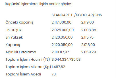 PiyasaaltınKMKTPYayınlama 28 Şubat 2024 16:08Güncelleme 11 Ocak 2026 14:42Altının kilogram fiyatı yükseldiYorumlar0 yorumYorum bırakYorumunuzu bizimle paylaşın.Ad SoyadYorumunuzYorum GönderYorumlar yayına alınmadan önce kontrol edilir.Henüz yorum yok.